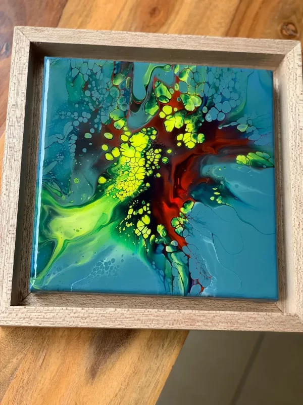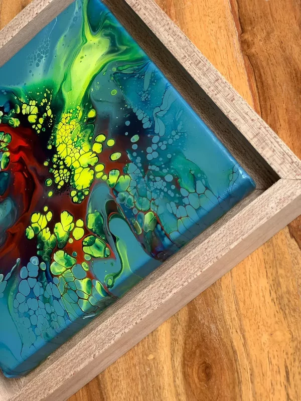 Material: Acrylic Paint, stretched canvas and epoxy resin Size : 10 x 10 inchInstructions:-