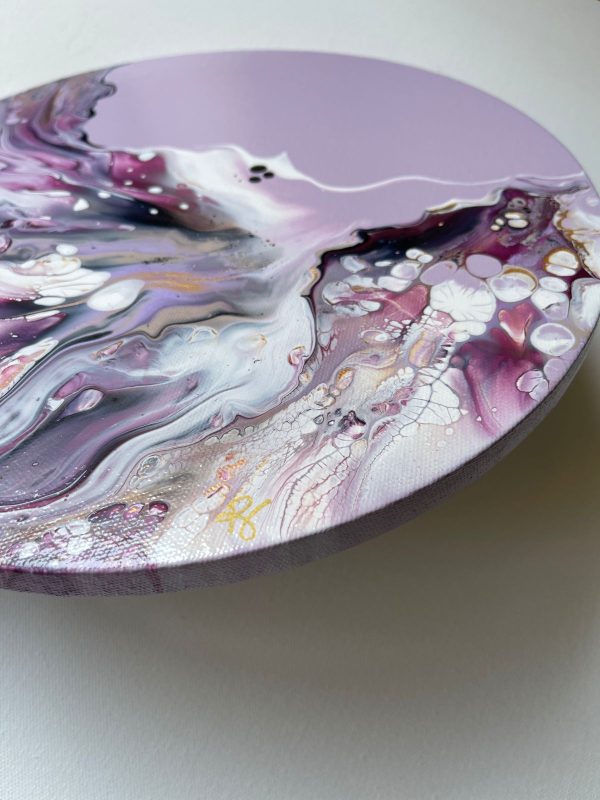 ‘Lilac Wave’ Abstract Acrylic Painting on Round Canvas