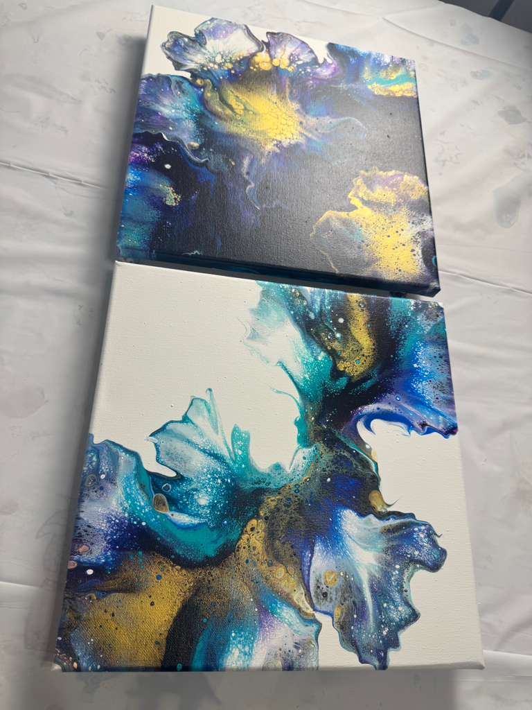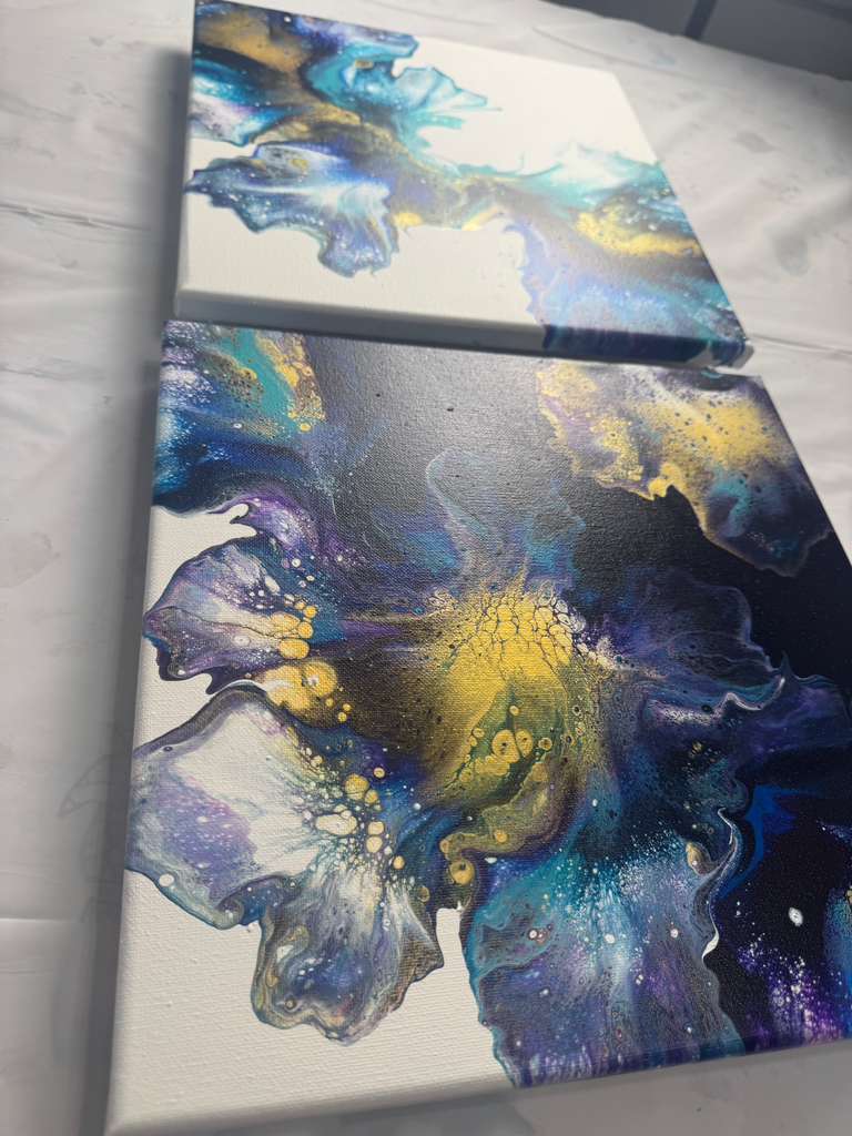 2 different paintings were created covering many tips and ideas and paintings were created with two different techniques – The Dutch pour and the Balloon Dip.