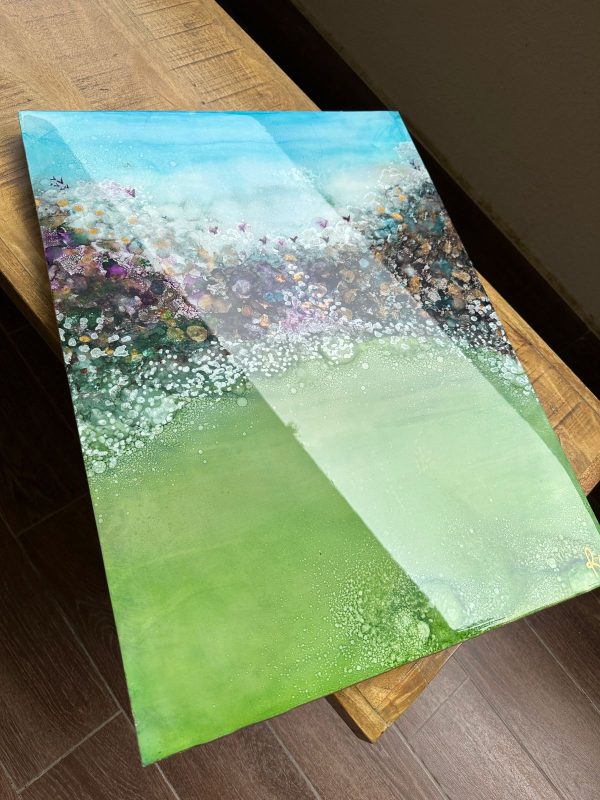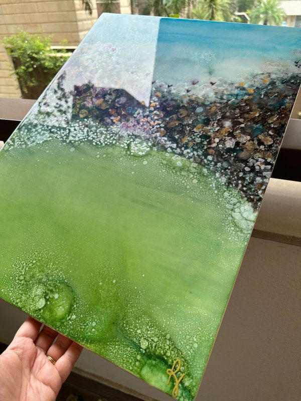 Material: Alcohol ink, varnish, wood & epoxy resin Size : 18 x 24 inchInstructions:-