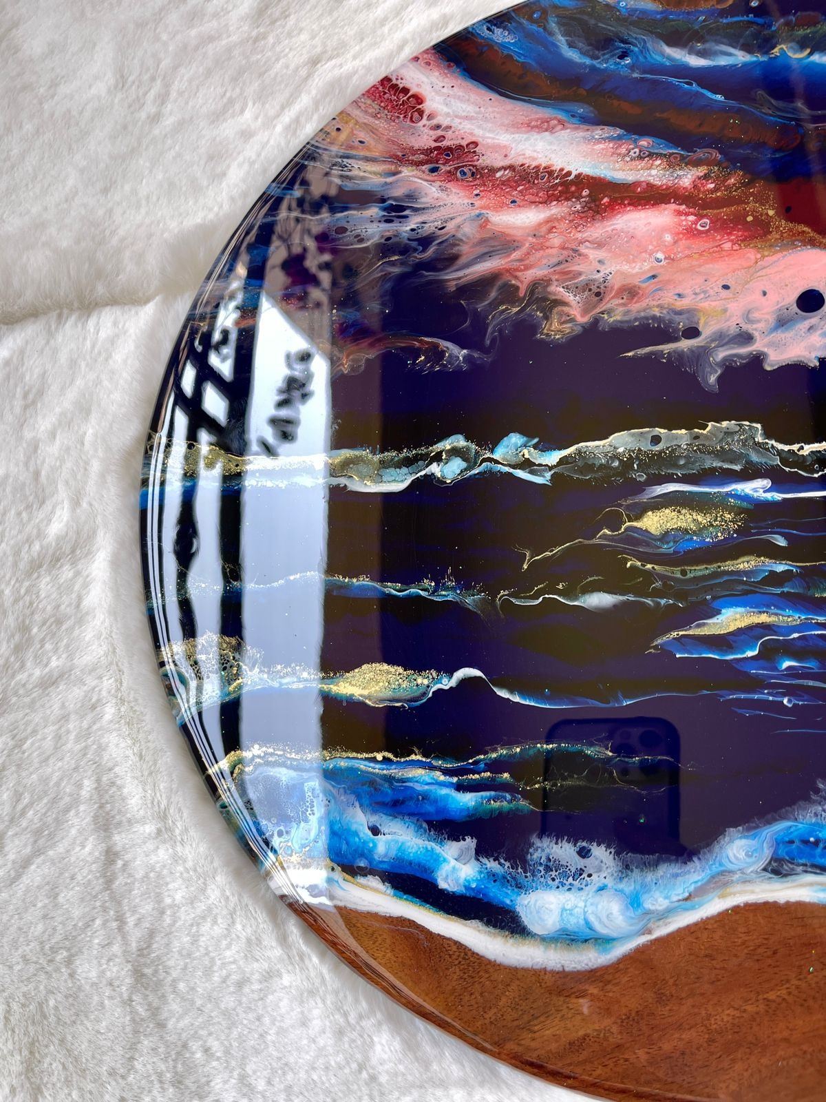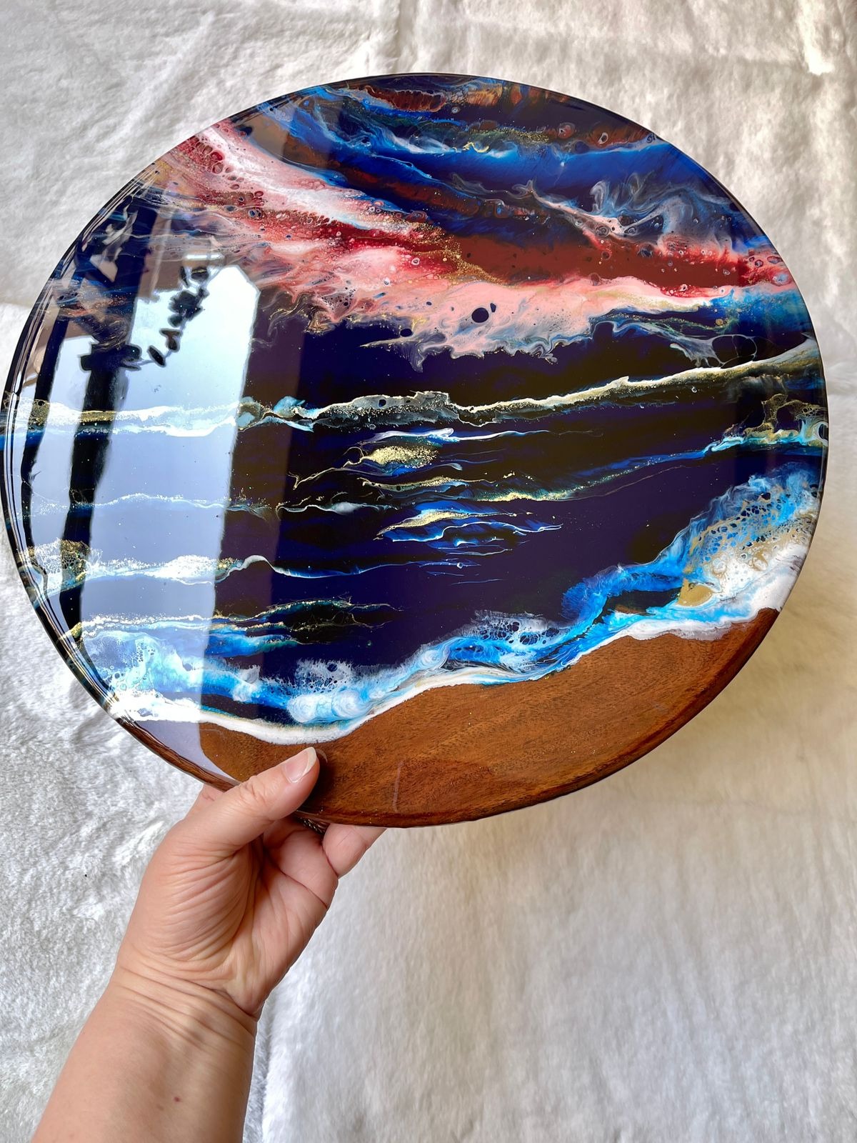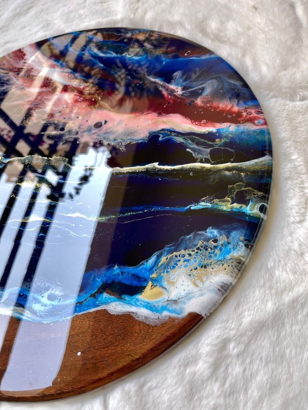 ‘Aurora’ Resin Art on Solid Teak Wood