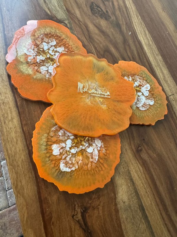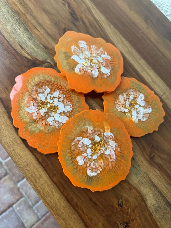 ‘Burnt Orange Bloom’ Resin Coasters (set of 4)