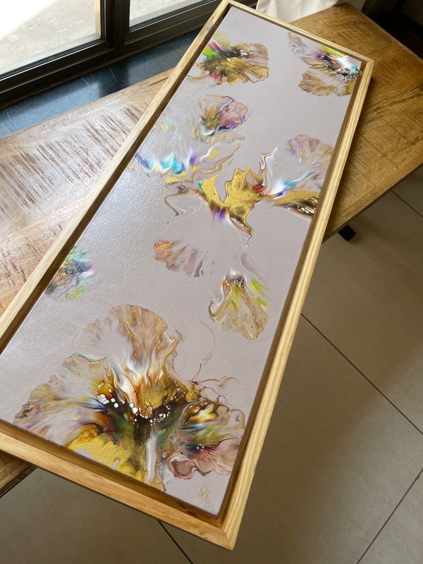 Material: Acrylic Paint, stretched canvas and acrylic varnish Size : 12 x 36 inch plus frameInstructions:-