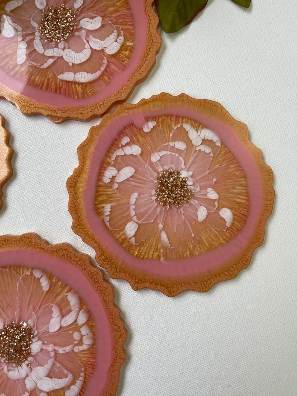 ‘Coral Petals’ Resin Coasters (set of 4)