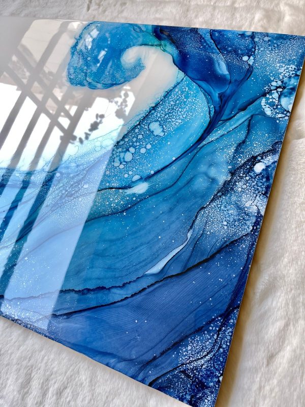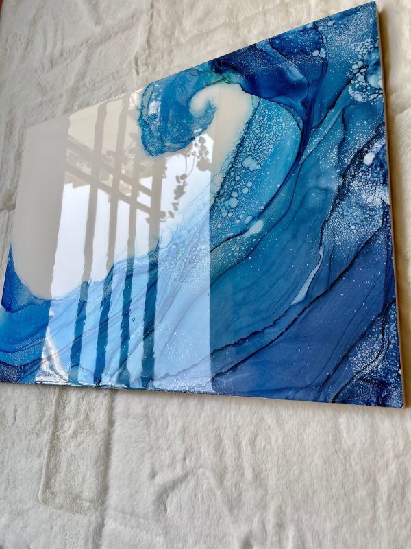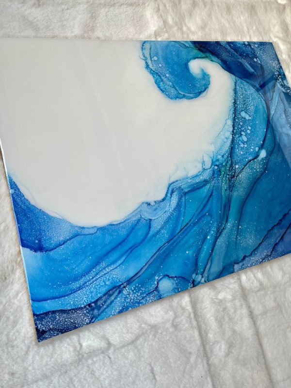 Material: Alcohol ink, varnish, wood & epoxy resin Size : 18 x 24 inch