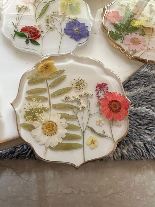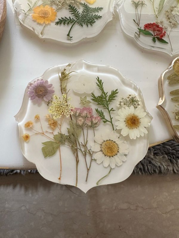 Material: Epoxy Resin and preserved flowers Size : 5 inch diameter approxInstructions:-