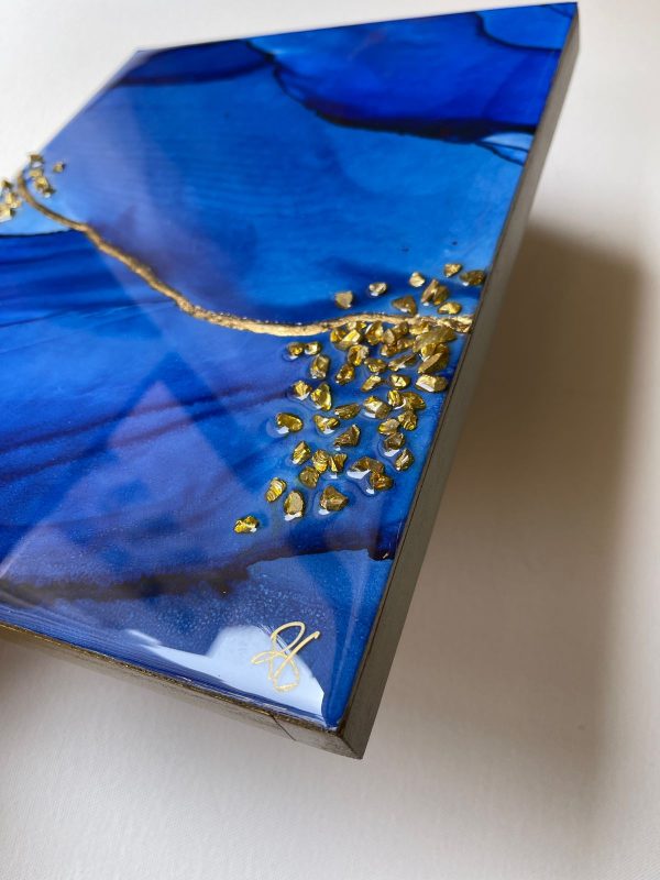 Material: Alcohol ink, varnish, wood & epoxy resin Size : 9 x 12 inchInstructions:-