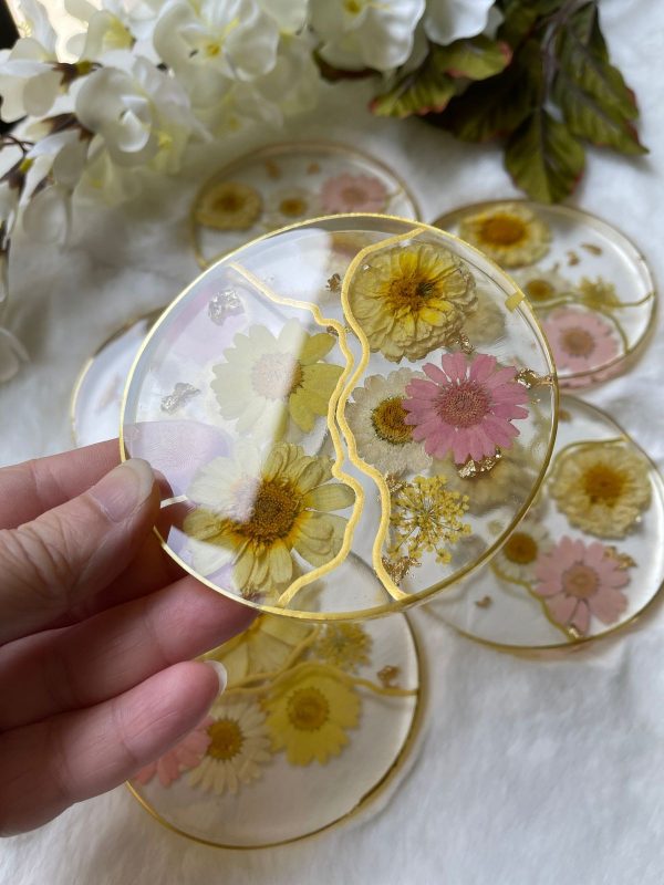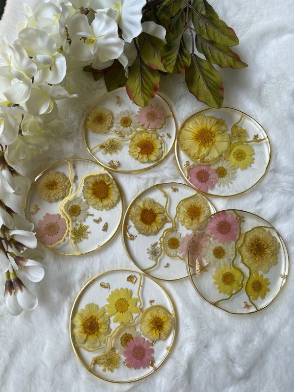 ‘Golden Floweret’ Resin Coasters (set of 4)
