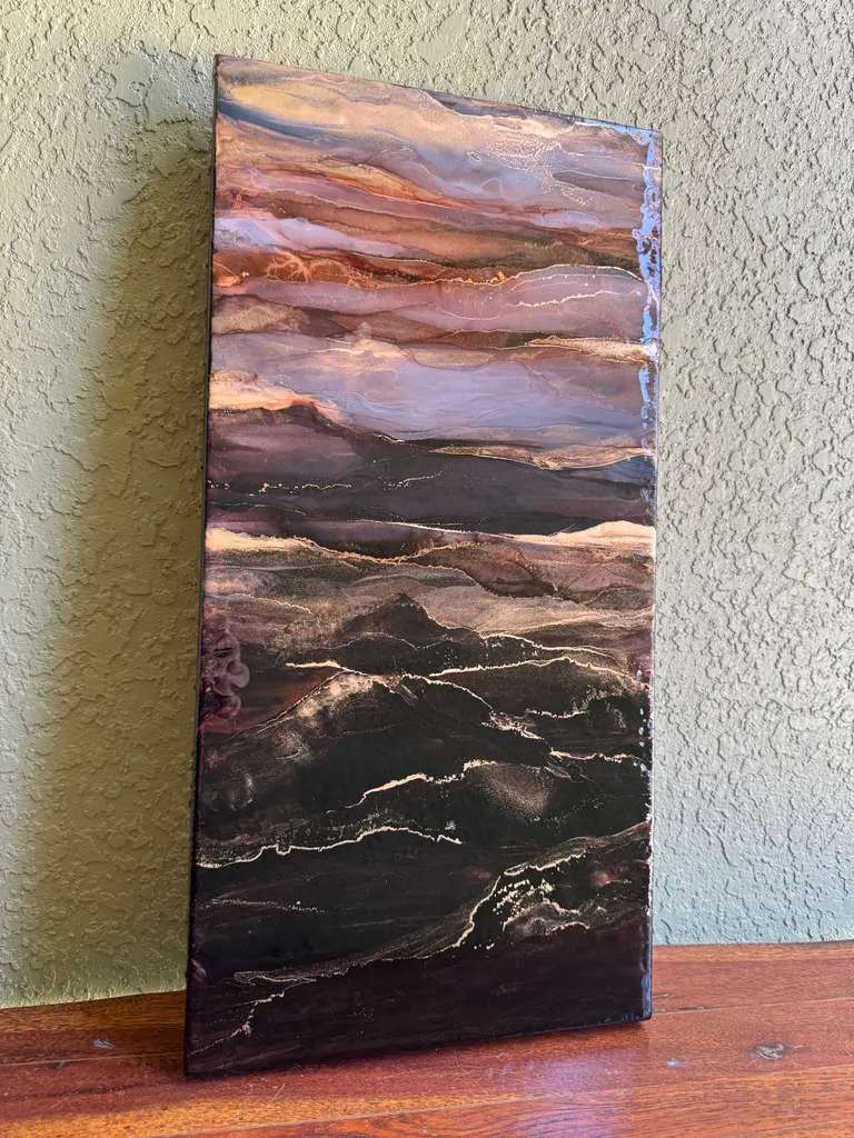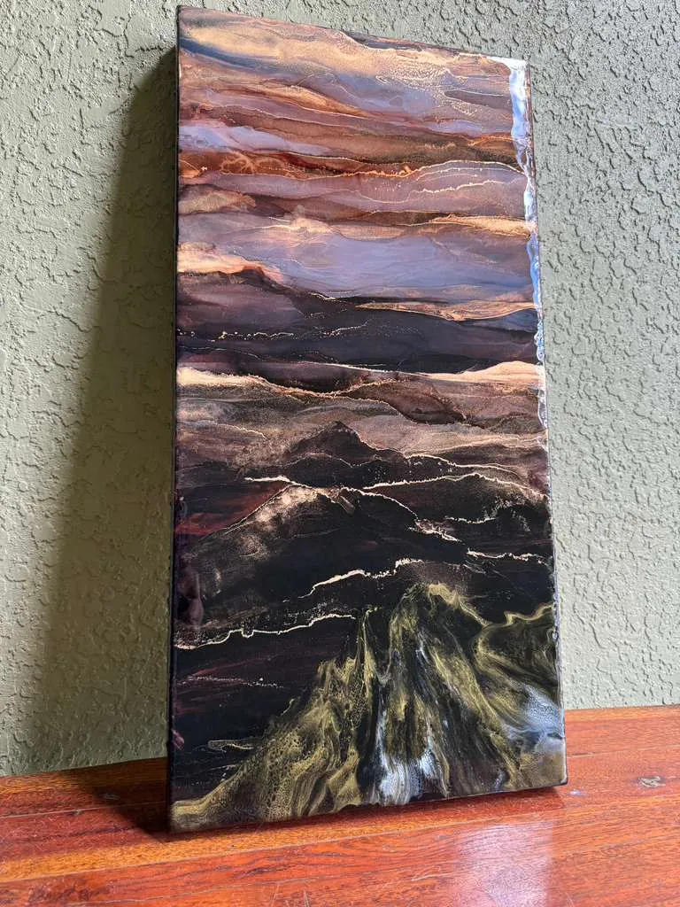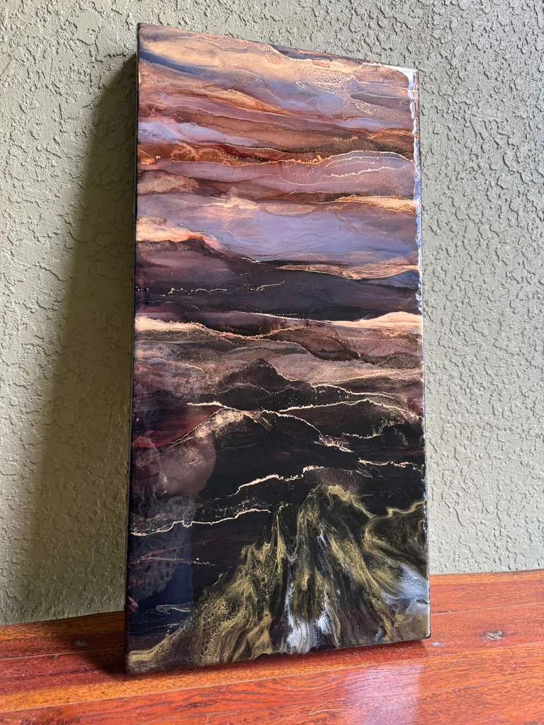 Material: Resin, Alcohol Inks, stretched gallery depth canvas Size : 12 x 24 inchInstructions:-