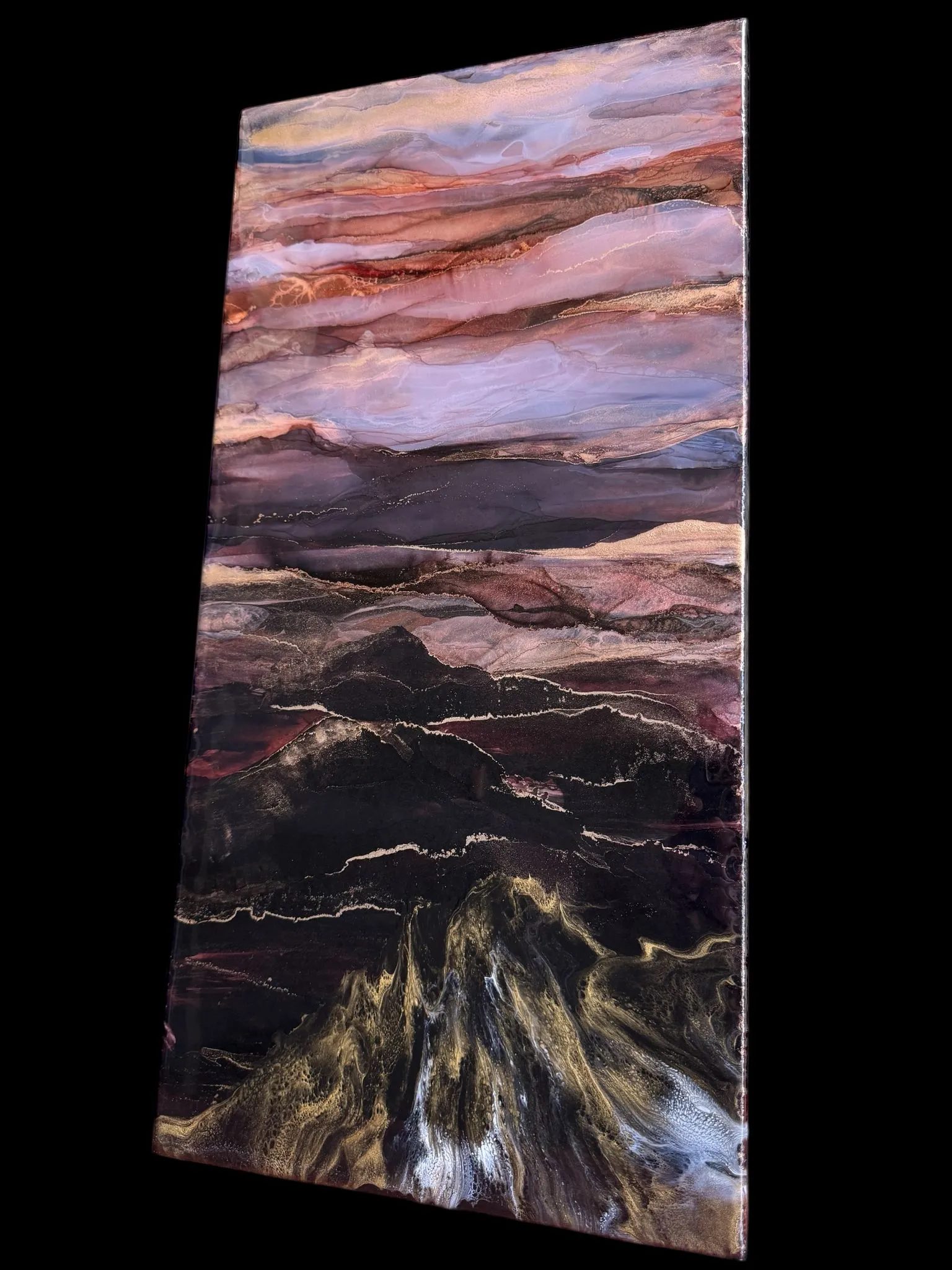 ‘Golden Peaks’ Resin & Ink Painting on Deep Canvas