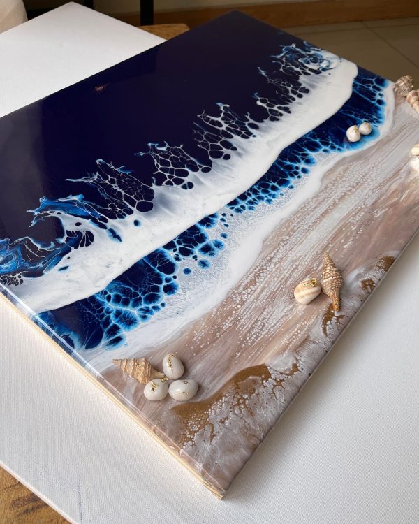‘Golden Sand Beach’ Resin Art on Wood Panel