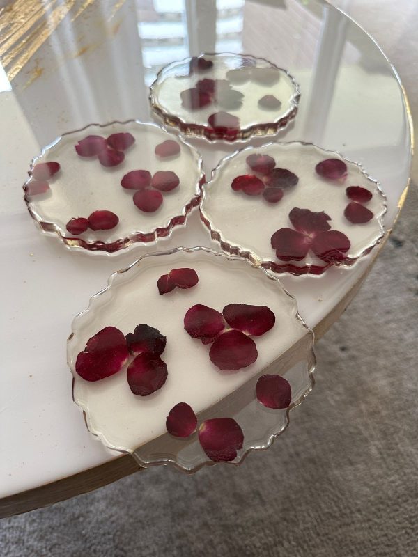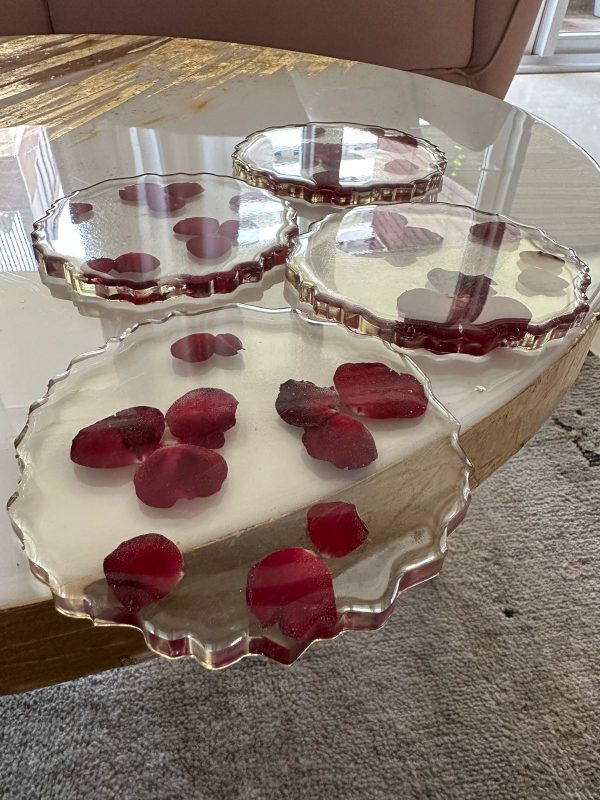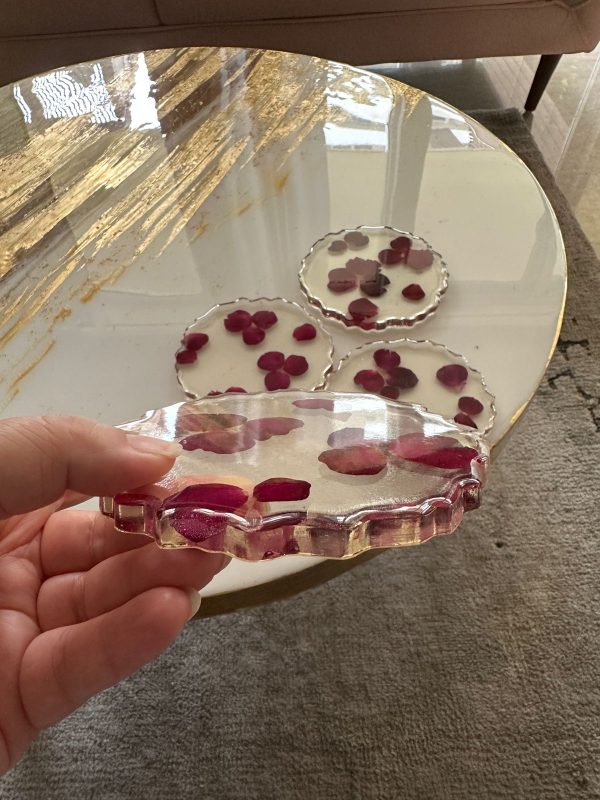 These unique coasters are made of epoxy resin with preserved ‘gulab’ – the Indian rose petals. These coasters have been created in several layers. They are our specialty preserved flower coasters which are elegant, glamorous and gives a pop of color to any interiors! They also make perfect gift items.