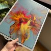 This abstract acrylic painting are in bright colors of yellow, pink, deep magenta and gold on a simple grey background. It’s beautifully framed in a silver color and this can be hung both ways, portrait or landscape. It’s a modern statement piece that will brighten your interiors. Pair it with ‘Oceanic-I’ another piece similar to it for a bigger layout on wall!