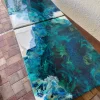 This beautiful wall art set has a unique abstract design of the ocean wave crashes and the life within. It’s created through a special resin art technique in shades of blues, greens. This art is done on beautiful wood panels with several layers of pigmented resin. The details are achieved through a special technique and is done in our signature style made with a lot of love and care and what we call a perfect conversational piece!