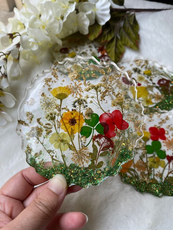 Material: Epoxy Resin and preserved flowers Size : 5 inch diameter approxInstructions:-