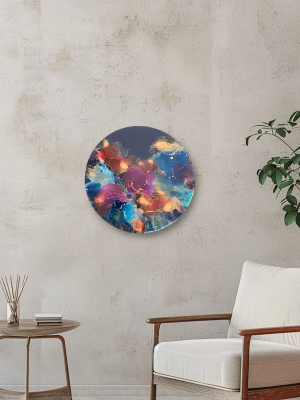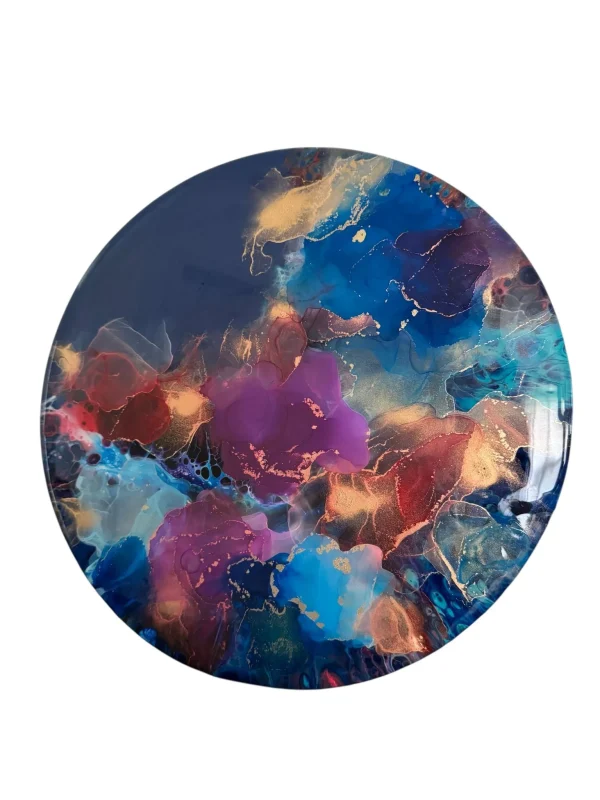 Material: Resin & Alcohol Inks On Wood Size : 14 in diameter | 35.6 cm diameterInstructions:-