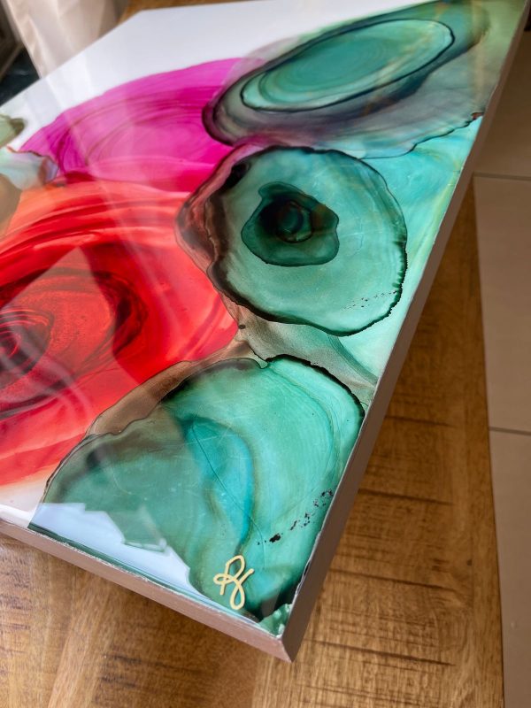 Material: Alcohol ink, varnish, wood & epoxy resin Size : 18 x 24 inch
