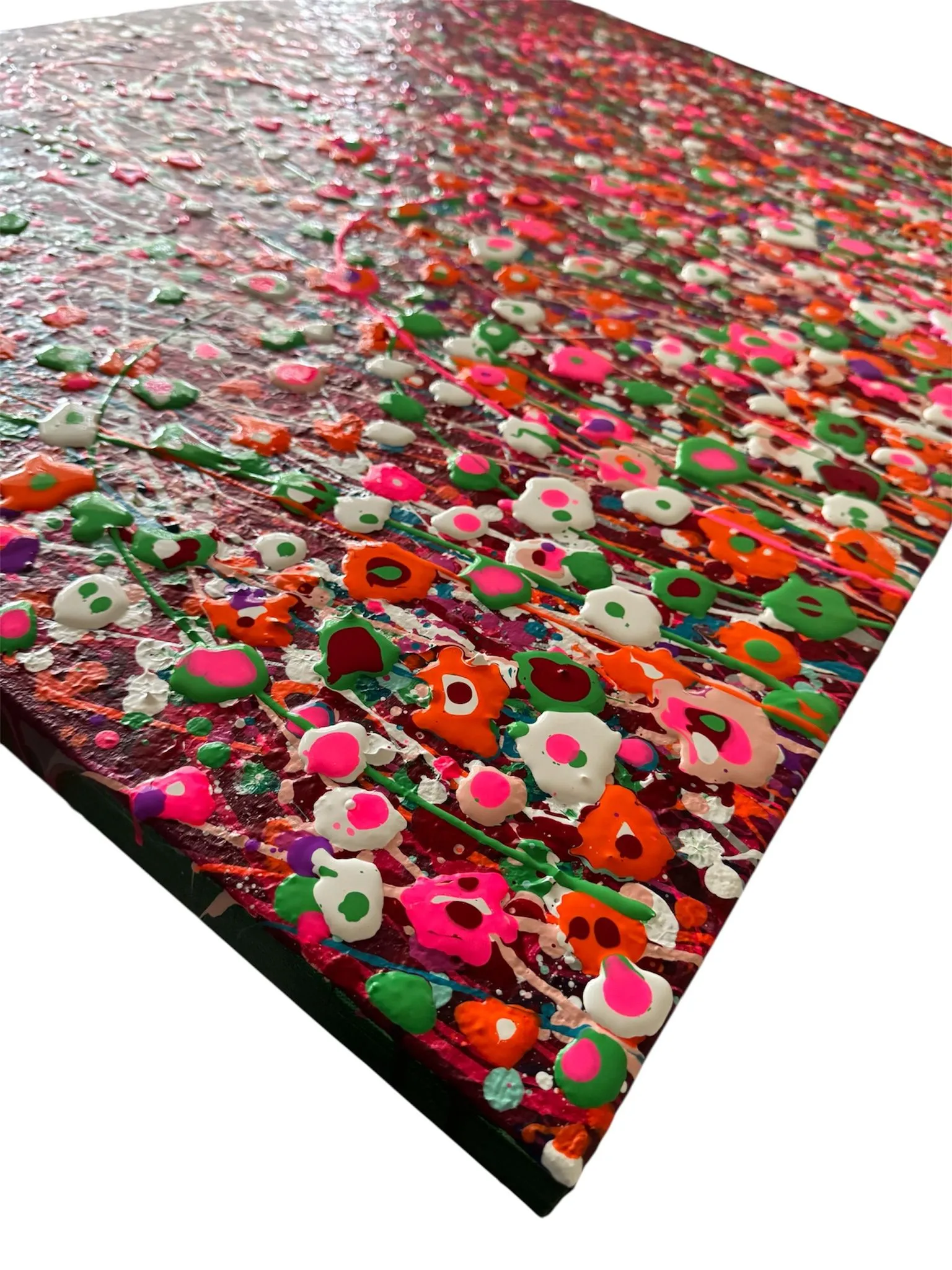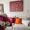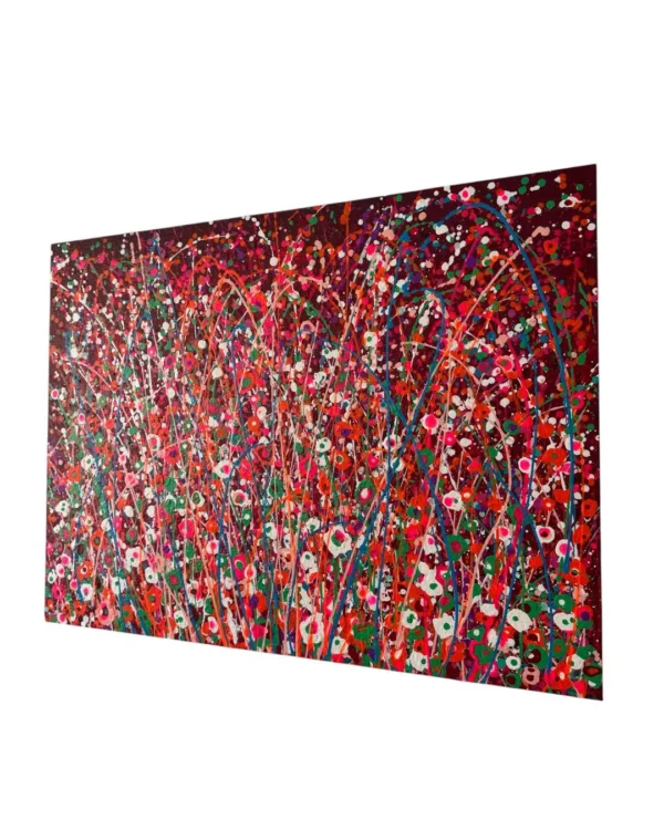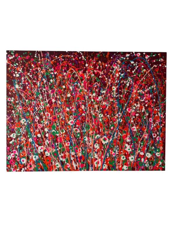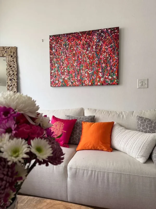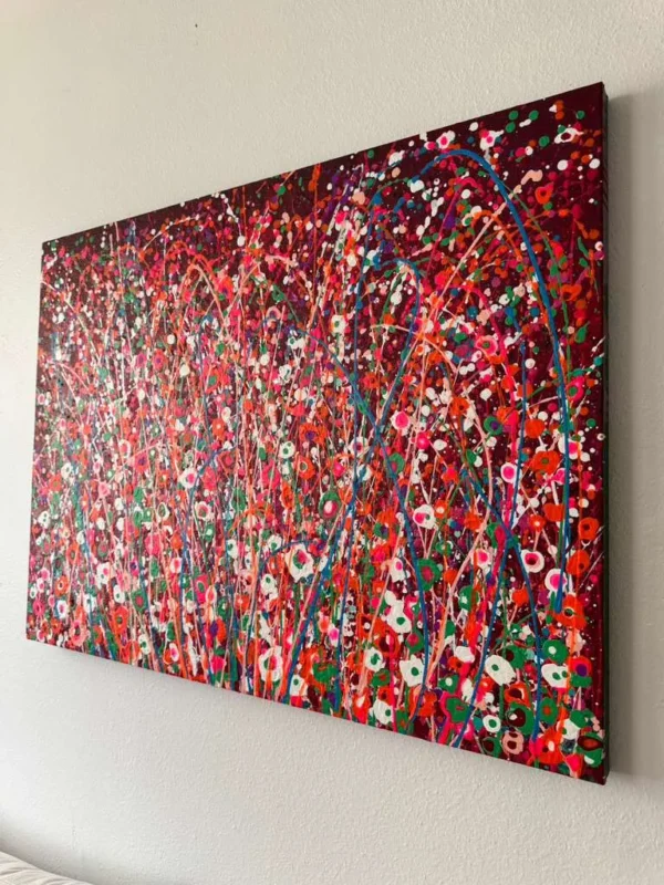 This beautiful abstract acrylic wall art is portraying a field of wild flowers in multi color. Dancing in the wind. It’s been created with acrylic paints in a special technique. This is a modern statement piece, has beautiful texture and is for those who want a pop of color in their interiors. It can be framed very easily.